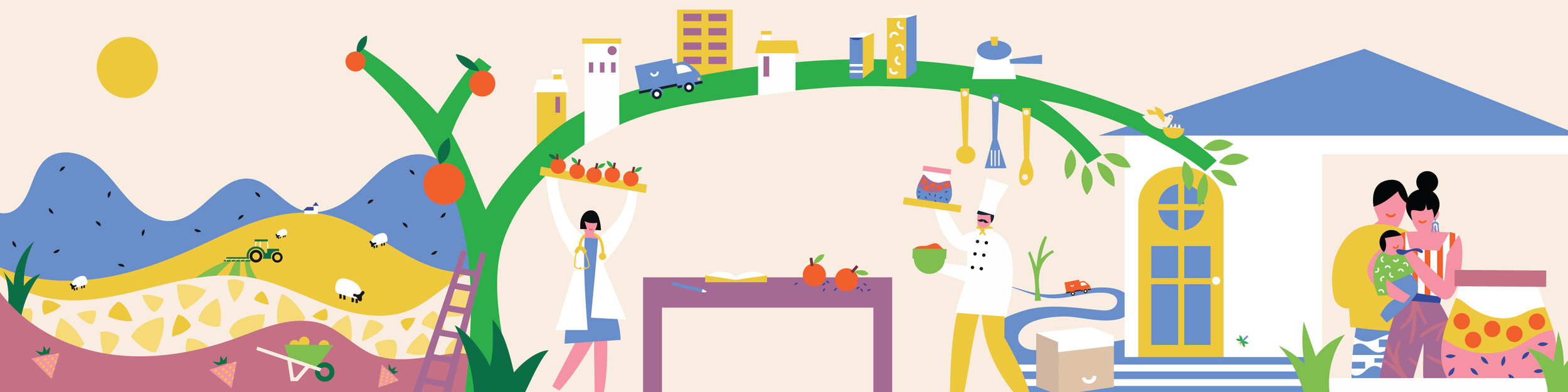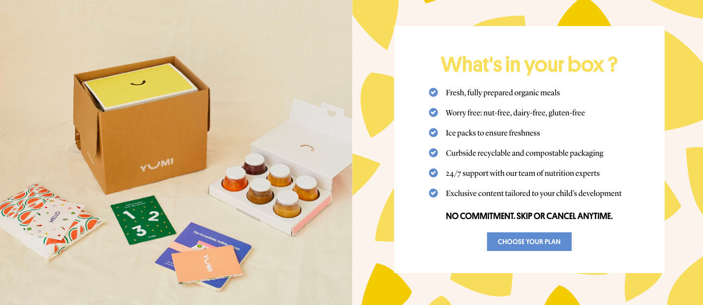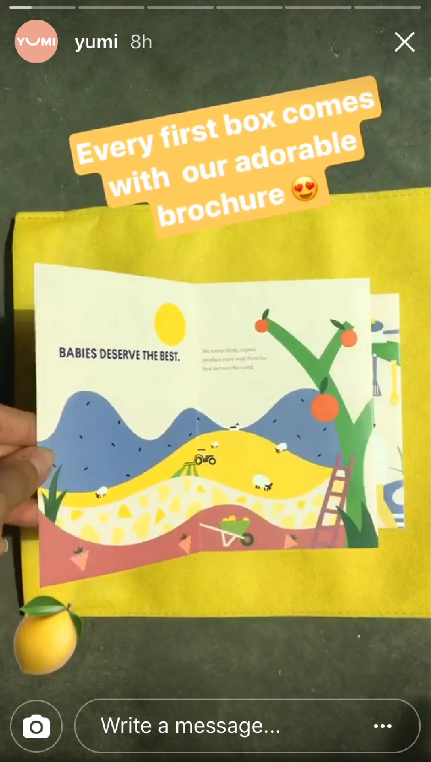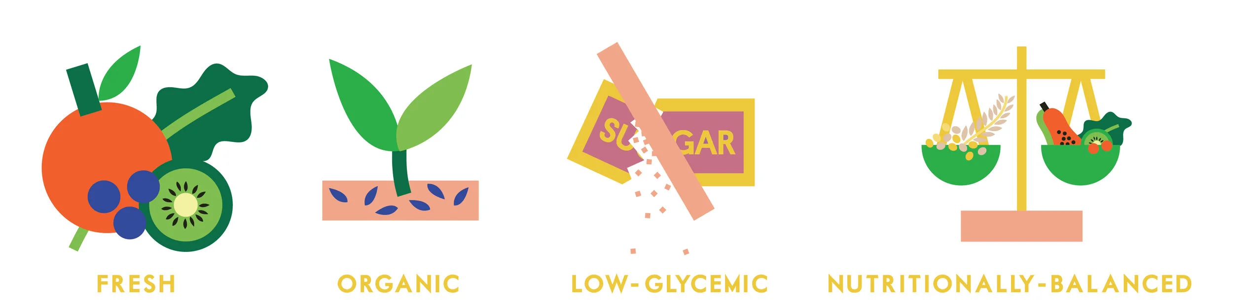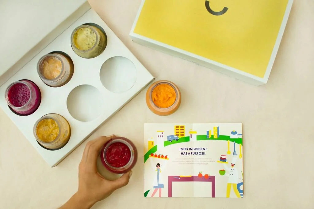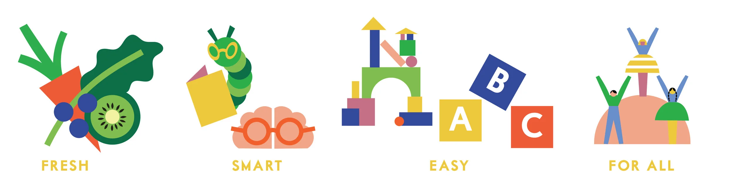 Brochure to illustrate Yumi baby food's "farm to face" concept and icons to illustrate the company's fresh, organic, allergen-free, and nutritious baby food.